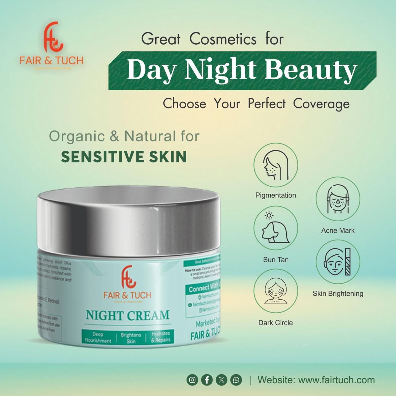 Wake up to glowing, refreshed skin with the Fair & Tuch Night Cream. This luxurious overnight cream